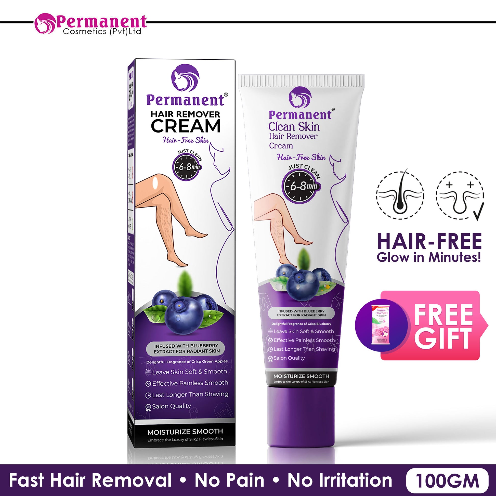 - Permanent hair remover cream with strawberry, peach, green apple & blueberry fragrance ensures effective hair removal in only 5 minutes. It comes with lemon extracts to leave your skin more touchable and smooth. It also contains lotus milk, which is known for its skin-softening and calming properties.