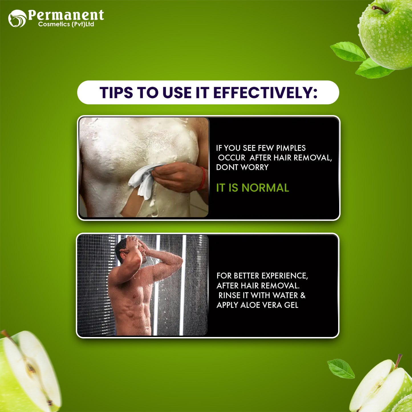 Get rid of unwanted hair with the crisp, clean scent of green apple. Gives your skin a fresh look and soft feel in just a few minutes.