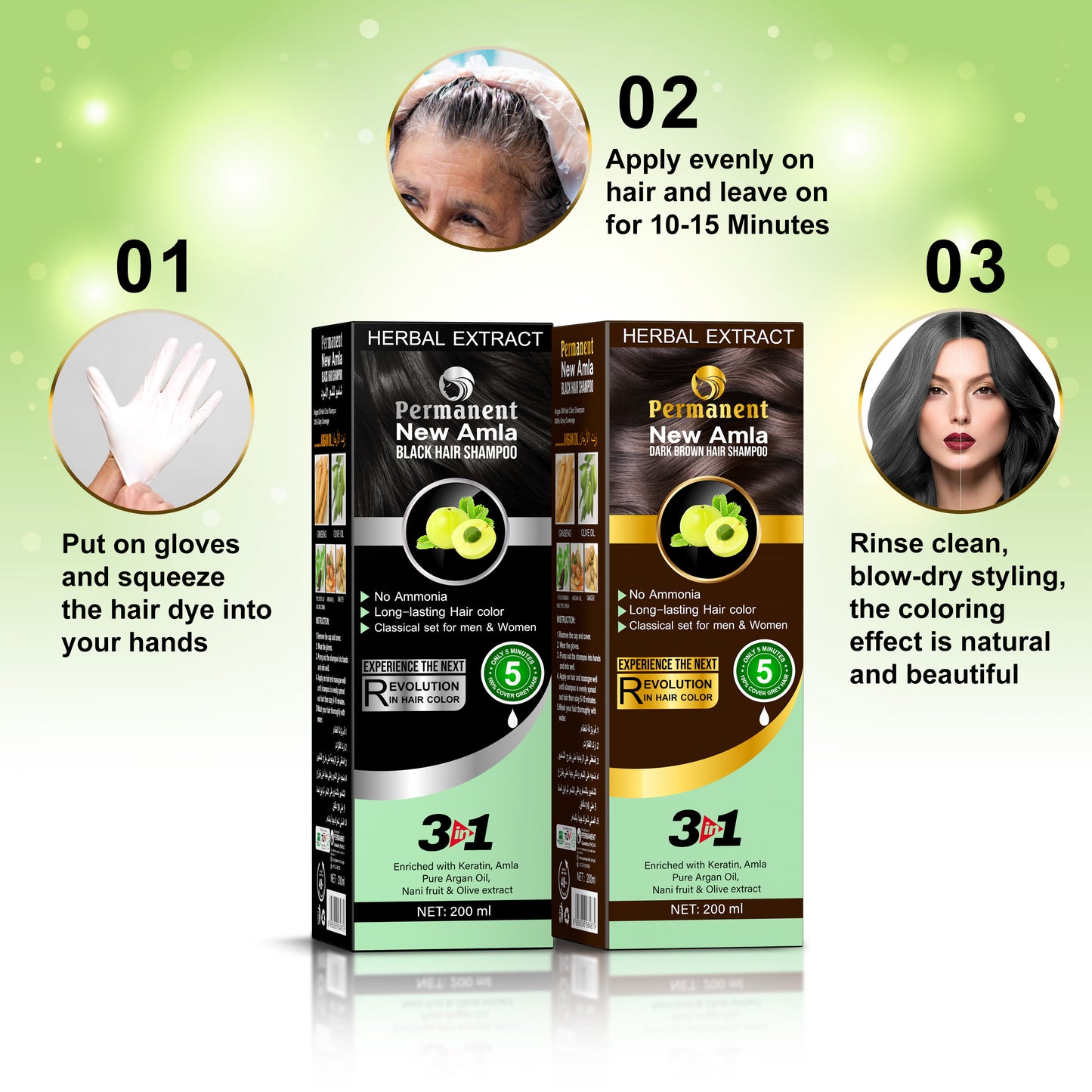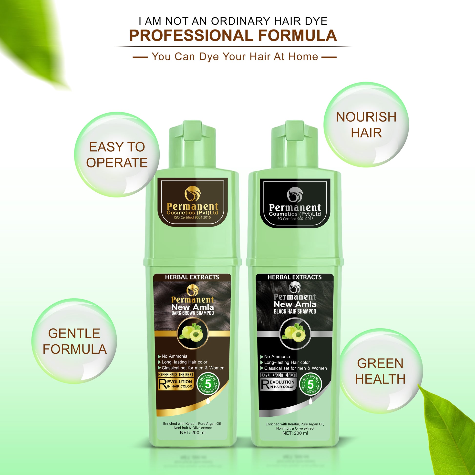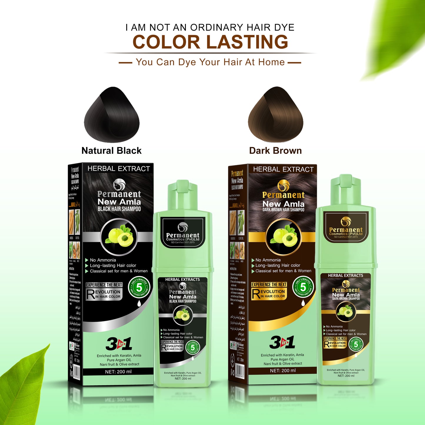 Discover the power of nature with Permanent New Amla Hair Color Shampoo, a quick, easy, and mess-free way to color your hair at home. Enriched with the goodness of amla and other herbal extracts, this 3-in-1 shampoo cleanses, colors, and conditions your hair in just 10 minutes.